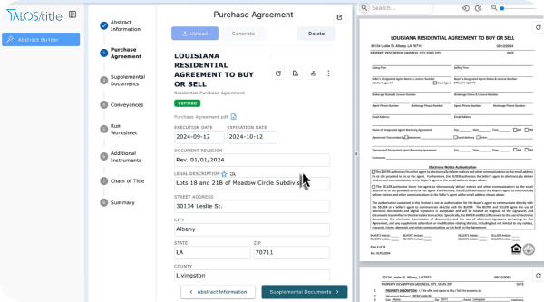 Intelligent title automation by TalosTitle pulls key data, builds a professional abstract, creates a clean index, and packages everything into a ready-to-share PDF, ready for examination.